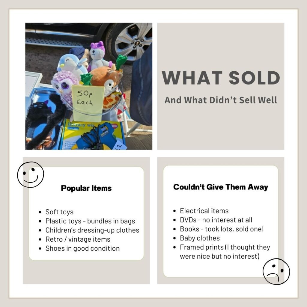 We made £100 just from clearing out miscellaneous bits and had a really fun morning doing something different together. It gave my son a little taste of running a stall, and everything that didn’t sell went straight to charity — so nothing was wasted.