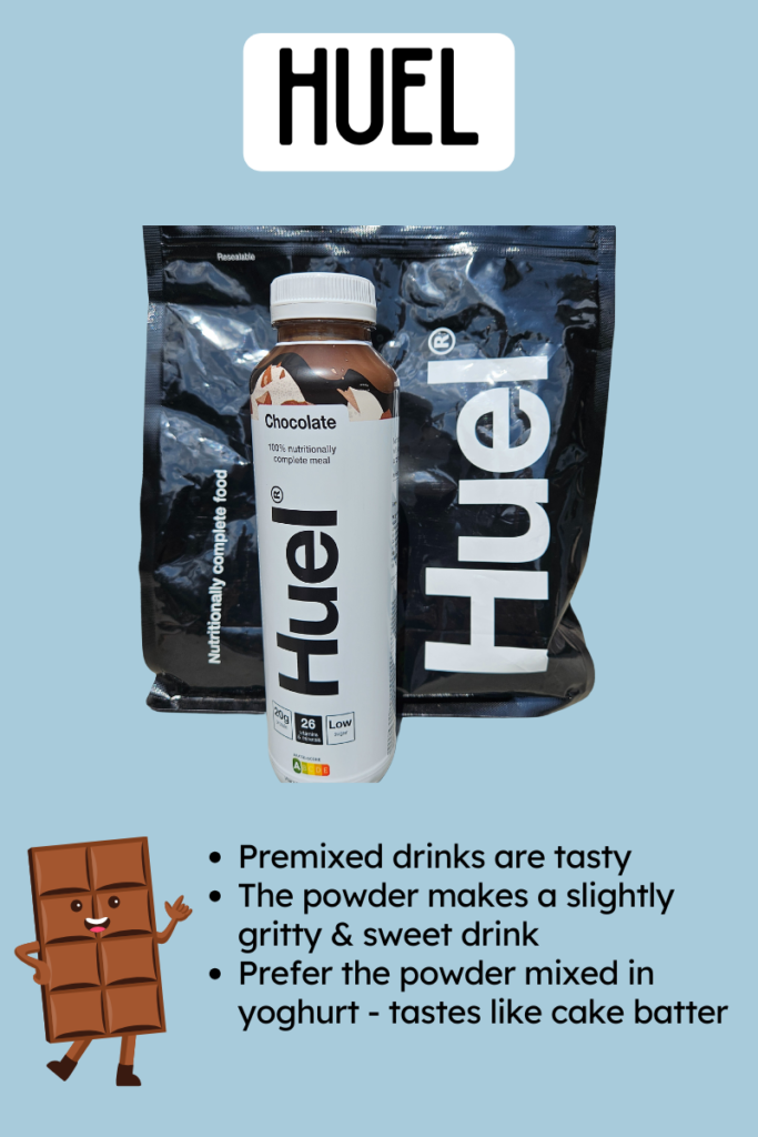 I bought this in a black friday bundle for my husband as he takes the premade Huel drinks to work for his lunch. The premixed drinks are rich, chocolatey and filling. Whilst I don’t have them regularly, I do enjoy them occasionally when I need a quick lunch on the go. I bought the powder because I thought it would be cheaper and more versatile than the bottles, while still being as delicious. The pre-made drinks have sucralose; I don’t find them too sweet. I didn’t check the Huel powder before buying (a rookie error), and it contains steviol glycosides, which is something I now realise is too artificial tasting and sweet for my taste. It was also quite gritty and not as smooth as the premixed drinks. It hasn’t been a hit with my husband either, for this reason, and for quite a while it languished in the cupboard. Rather than waste it, I decided to incorporate it into other recipes, and this has worked well. I have made protein pancakes with it a few times, and these were good. I also use it in my current favourite breakfast – greek yoghurt, chia seeds, bran sticks, frozen cherries, honey and about 15g of Huel protein. When this is all mixed up the taste and texture is like cake batter, its filling and delicious so I am now addicted to having this on repeat in the mornings.