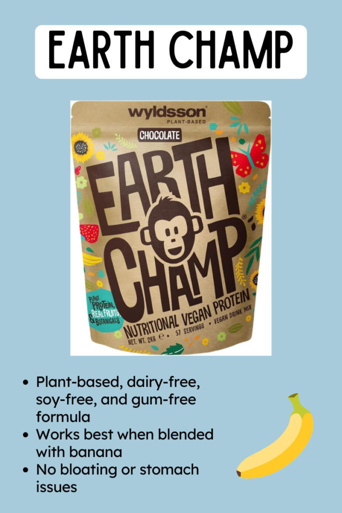 This was the first powder I tried – it had generally good reviews on Amazon for its vegan plant-based formula, advertised as nutrient-dense, no nasties and with a natural taste. There is no dairy, soya or gums in it. I liked the packaging, which eventually swung it for me! For a first try of a protein powder, I did not have any comparison, and it was nice enough. Made with just water or milk, it was a bit sweet tasting for my liking due to the stevia extracts in it. The only way I could drink this was by blending it up with a banana. This addition made it more palatable and enjoyable, like a normal milkshake. I could have perhaps added it to yoghurt or porridge, but at this early stage in my protein powder experience, I didn’t think to do this. Overall, it’s a good reputable company with solid Amazon reviews. I would try other products in their range, but perhaps avoid those with stevia—no bloating or tummy issues with this one.