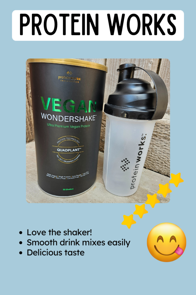 I bought this directly from the Proteinworks website using a TopCashback link. I conducted extensive research on this one, having become wiser from my previous protein purchase mistakes. The powder contains sucralose, which, although I am not a fan of sweeteners, I do prefer over stevia. I also got a Proteinworks shaker for a reduced price. Like the other products I have tried, this one is plant-based, and each shake contains 20g of protein and 94 calories. It mixes beautifully in the shaker, with no grittiness whatsoever. The taste is subtle but pleasantly chocolatey. I mix this with ⅓ milk and ⅔ water. This is my favourite protein powder to date, and I also love the shaker as it works so well. There’s absolutely no nose holding to drink this down in fact its a really tasty treat and feels full of goodness.